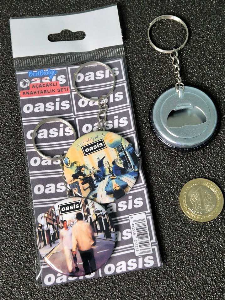 OASIS definitely maybe ve (What's the Story) Morning Glory? albüm kapak görsellerinden oluşan, arka yönleri şişe kapağı açacaklı, 2'li metal anahtarlık seti. Yüksek kaliteli baskı içerir. Çapları 4.4 cm'dir. Sıfır paketinde gönderilmektedir. Stok sorunu olmayıp çoklu sipariş isteyebilirsiniz. ✅ Oasis – Definitely Maybe: Rock 'n' Roll Star, Shakermaker, Live Forever, Up in the Sky, Columbia, Supersonic, Bring It on Down, Cigarettes & Alcohol, Digsy's Dinner, Slide Away, Married with Children Oasis – (What's the Story) Morning Glory?: Hello, Roll with It, Wonderwall, Don't Look Back in Anger, Hey Now!, The Swamp Song – Excerpt 1, Some Might Say, Cast No Shadow, She's Electric, Morning Glory, The Swamp Song – Excerpt 2, Champagne Supernova