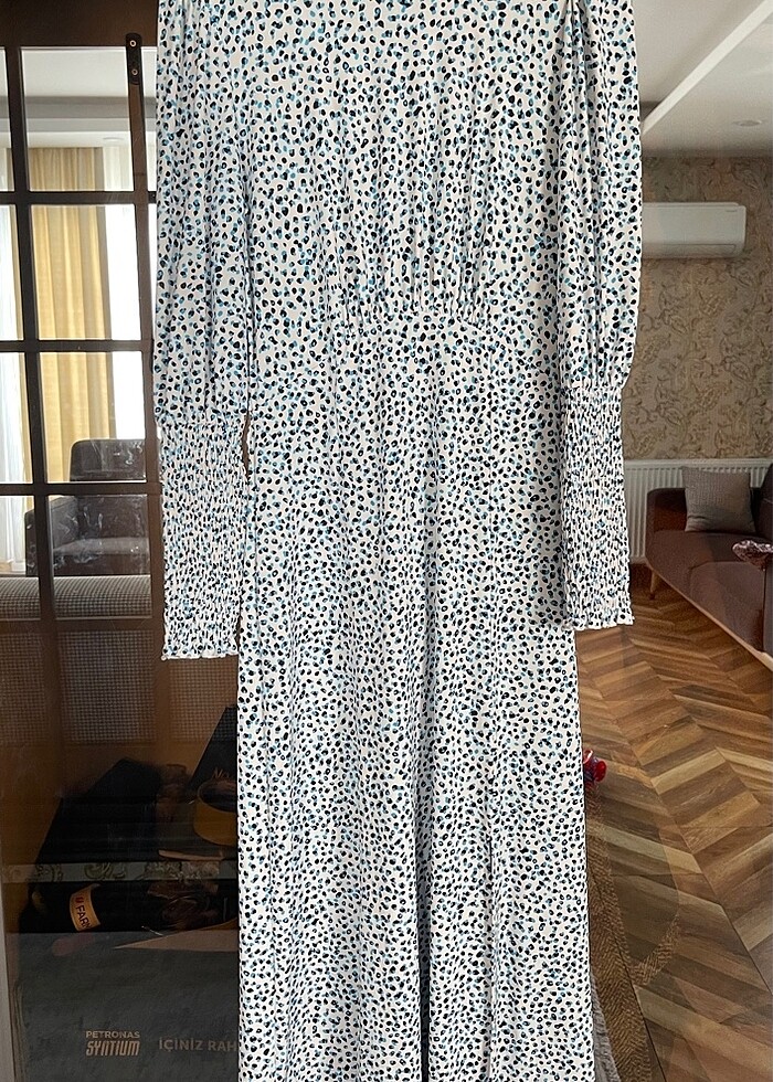 Etiketi yok ama hiç kullanılmadı temiz kol ve yırtmaç detaylı elbise iki kol arası 45 boy 122cm