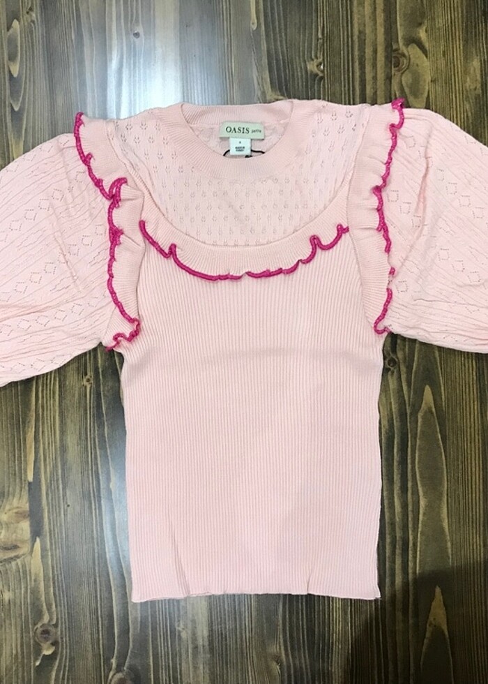 Yabancı bir markanın ürünüdür, yurtdışından gelmiştir. Ürün daha önce hiç kullanılmamıştır. Etiketleri ve kartı üzerindedir. Ürünün kol altından eni:27.5 cm, boy:49 cm, yaka açıklığı:11.5 cm, kol boyu:28 cm, kol eni en geniş yerde:20 cm’ dir. Temiz durumdadır ve herhangi bir deformasyonu yoktur. Lütfen ölçüleri kontrol ederek alım yapınız, ürünler hiç kullanılmadığı için iade kabul edemiyoruz. İçerik bilgisi yıkama talimatında mevcuttur. #kadınbluz #kadınkısakollubluz #kısakollubluz #kadıngiyim #triko #kadıntriko #oasis #kısakollukazak #kısakollutrikokazak #kısakollukadıntrikokazak #kısakollutriko #oasıs #balonkolbluz #balonkoltriko