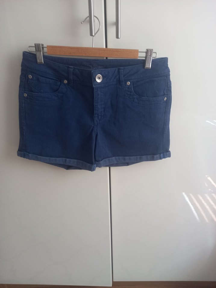 Oasis koyu mavi, dar kesim mini şort, likralı ,düşük bel geniş bir beli vardır 36-38 uyumludurg ünlük sokak stili ve açık hava etkinlikleri için uygundur. Sayılı giyildi...