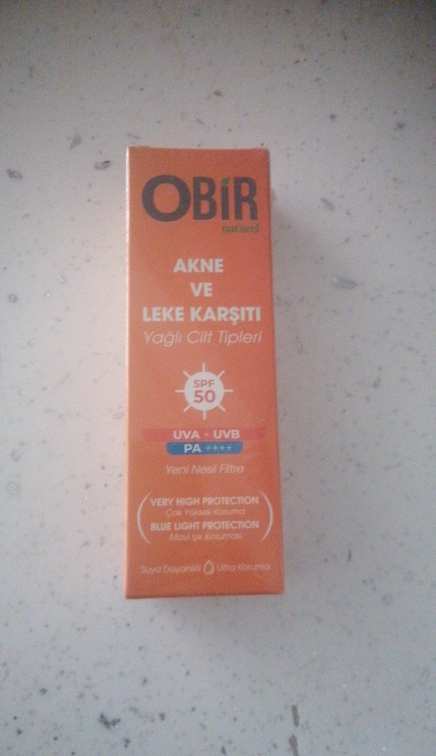 OBiR güneş kremi SPF 50 koruma sağlar, UVA ve UVB filtrelidir, akne ve leke oluşumuna meyilli yağlı ciltler için uygundur. Mavi ışın koruması da içerir. ☀️
