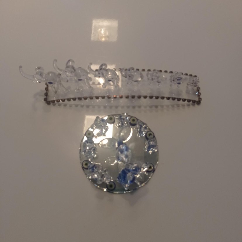 İki parçadan oluşan,nazar boncuklu ve filli obje.