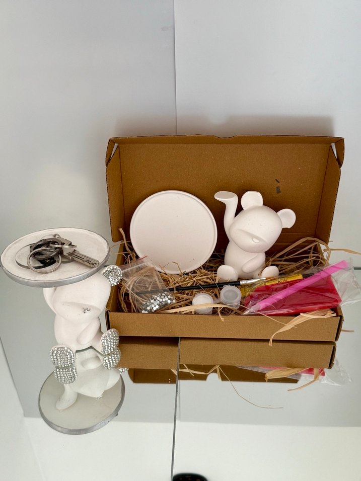 Boyanabilir ayıcık figürlü dekoratif mini standı , boya ve kristal taşlarla süsle. Harika terapi gibi set hem rahatlatır hem mutlu eder Set içeriği 1 Taş tozu ayıcık ve tepsisi obje 1 adet fırça 2 li boya 1 adet Kristal taş tutucu kalem 1 adet kristal taş tepsisi 1 adet paket kristal taş 1 adet yapıştırıcı İstek üzerine hediye paketi yapılır