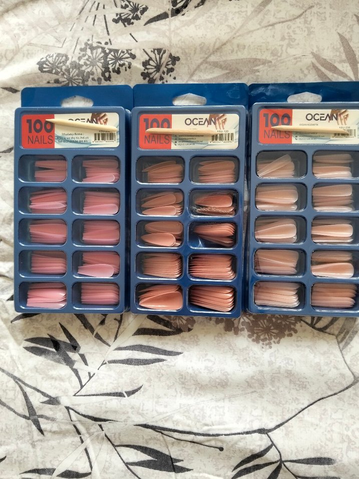 Ocean markasının 100 parçalık bej tonlarında takma tırnak seti, doğal ve açık renklidir. 1 paket fiyatıdır. 3 lu alımda 250₺