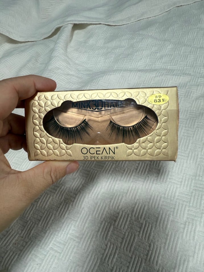 Ocean markasına ait 3D ipek kirpikler, 831 modeli, altın parlaklığıyla doğal ve etkileyici görünüm sağlar.
