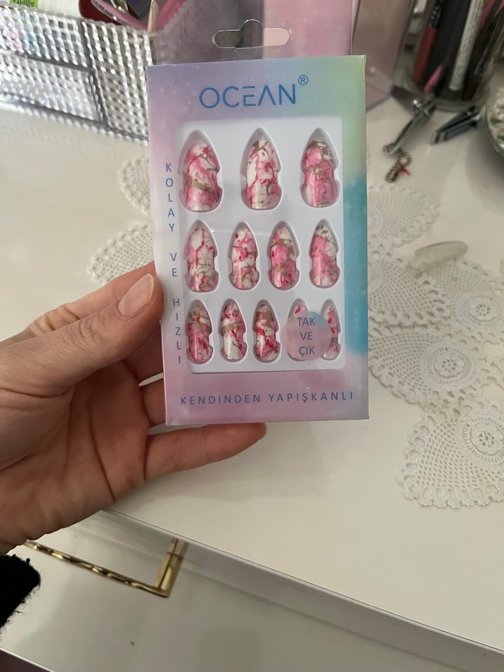 Ocean markalı pastel pembe renkli, kendinden yapışkanlı tırnak süsleri. Kolay takılıp çıkarılabilir özellikte.