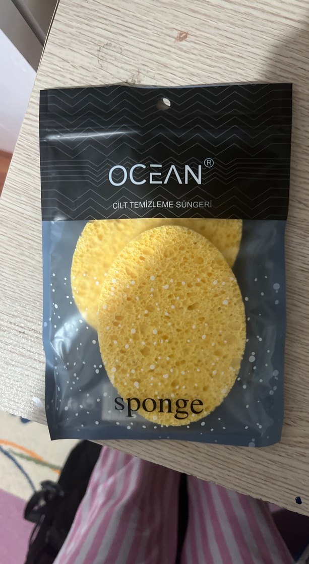 Ocean markalı parlak sarı cilt temizleme süngeri, nazikçe peeling yaparak cilt bakımına yardımcı olur.