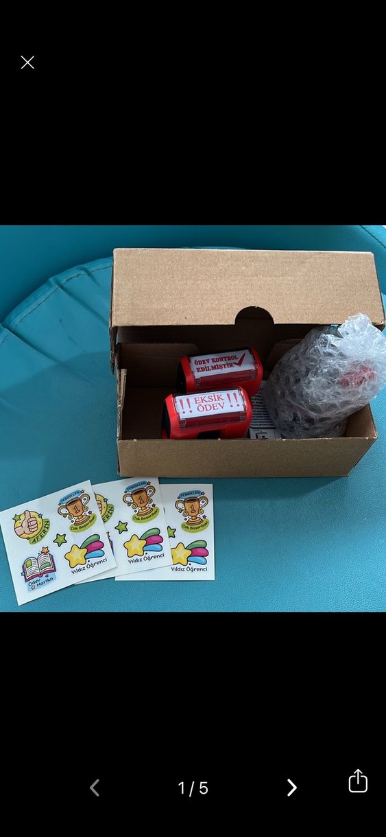 Ödev kontrolü için yapılmış, kutulu, açılmamış mürekkepli 2 adet kaşe. Renkli çıkartmalar ve eğlenceli parçalar içerir.