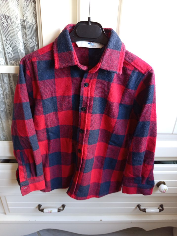 5-6 yaş oduncu gömlek,yeni gibidir çocuk gömlek giymeyi sevmediği için neredeyse hiç kullanılmamıştır.