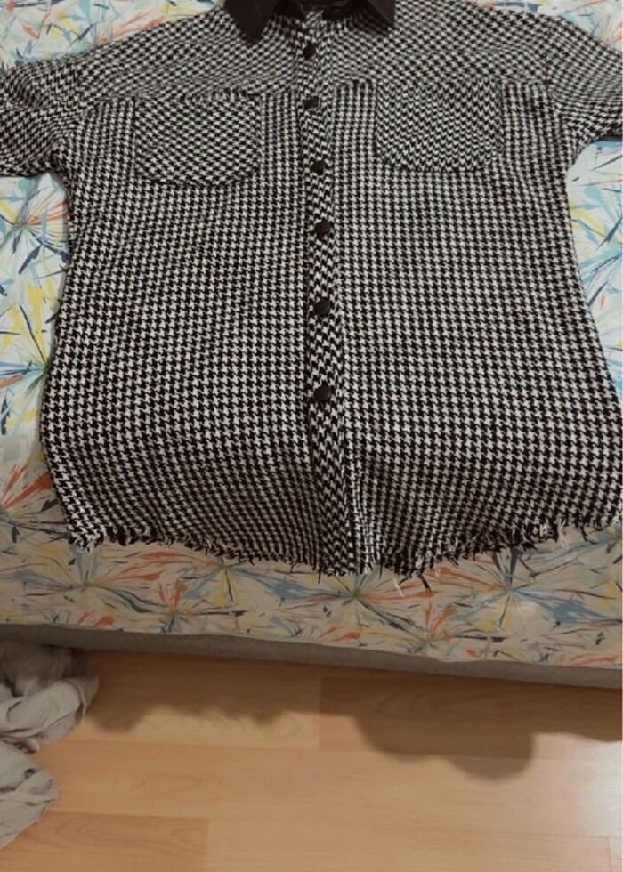 Yakası ve kolları deri oduncu gömleği çok yıpranmadı sadece her oduncu gömlekte olduğu gibi biraz tüylenme var göze batacak şekilde değil