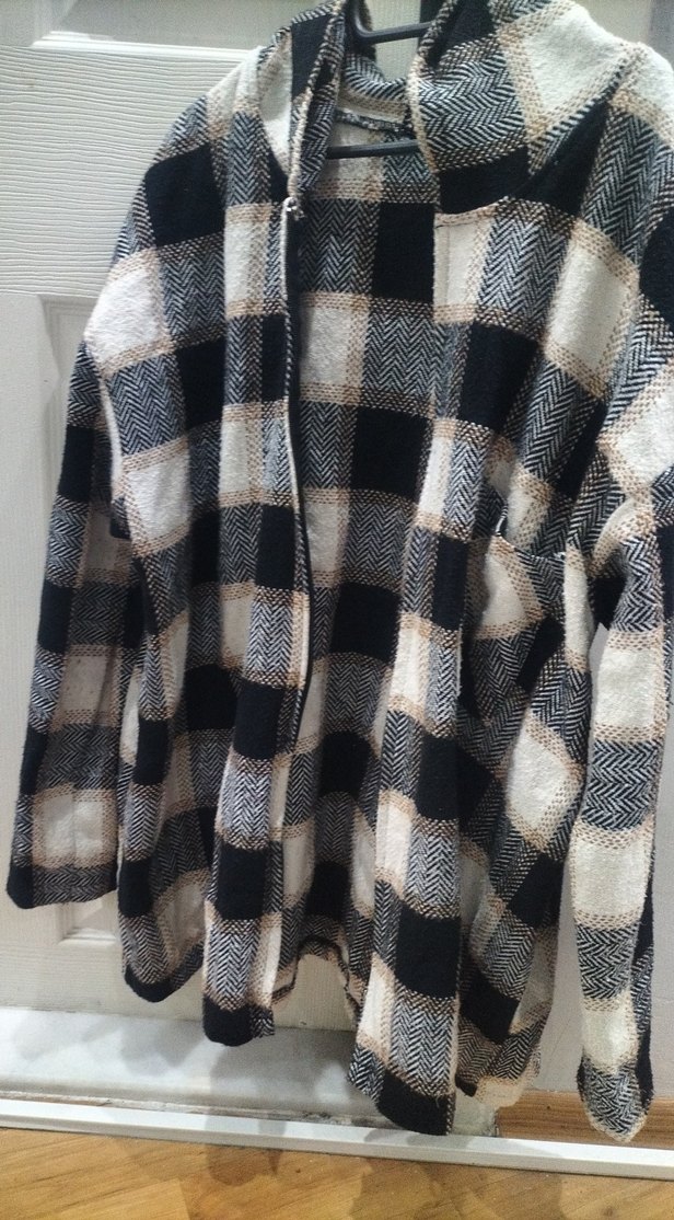 oduncu kapşonlu uzun büyük beden kadın kareli fermuarlı