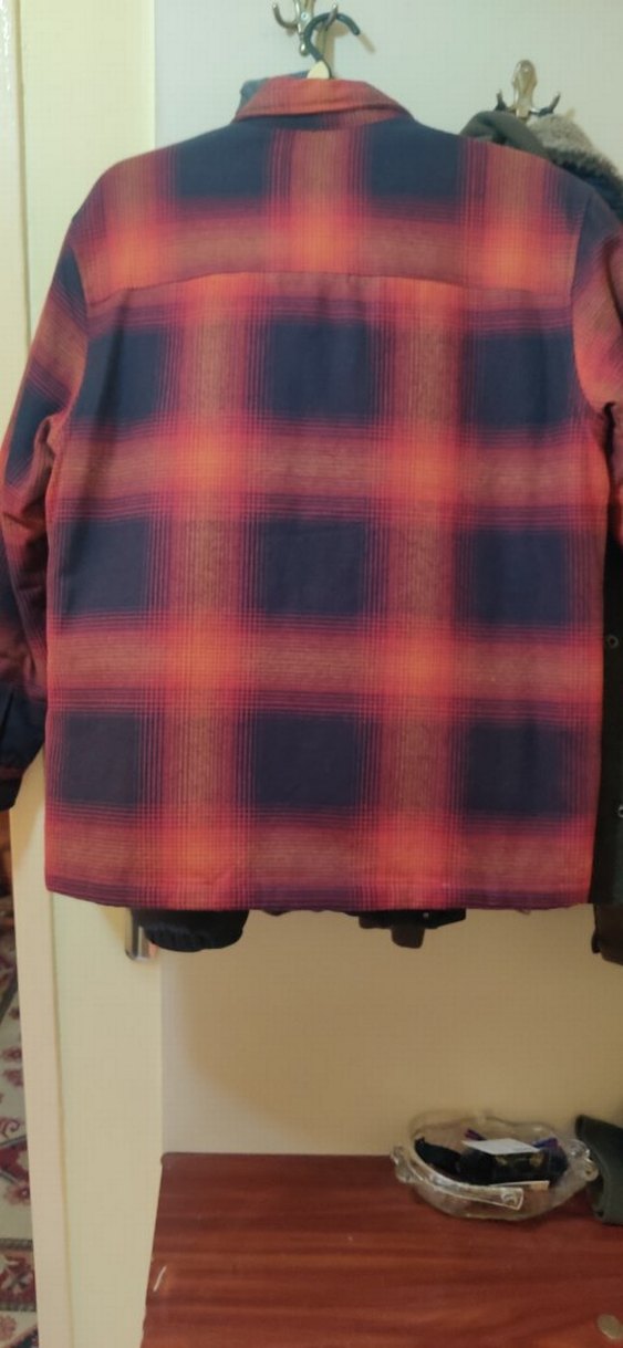Düğmeli, yakalı ve uzun kollu erkek midi ceket. Sentetik kumaş üzerine koyu renkli tie-dye desenli, bol kesim ve sokak stili için uygun.