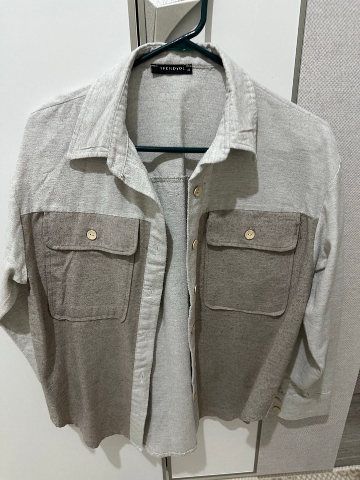Kahve ve gri tonlarının bulupmasıyla oluşan bir gömlek ben çok severek tercih etmiştim 38 40 beden de giyebilir ben 40 bedenim