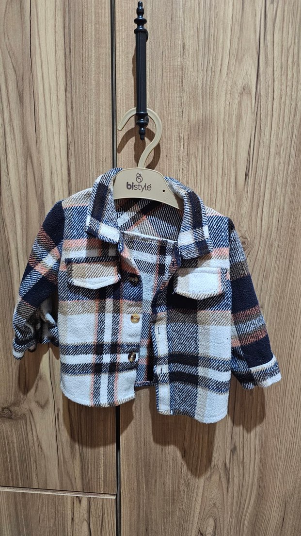 Bol kesim, uzun kollu, düğmeli erkek çocuk gömleği. Yumuşak ve sıcak kumaştan, gri ve kahverengi ekose desenli. Sokak stili için uygun.