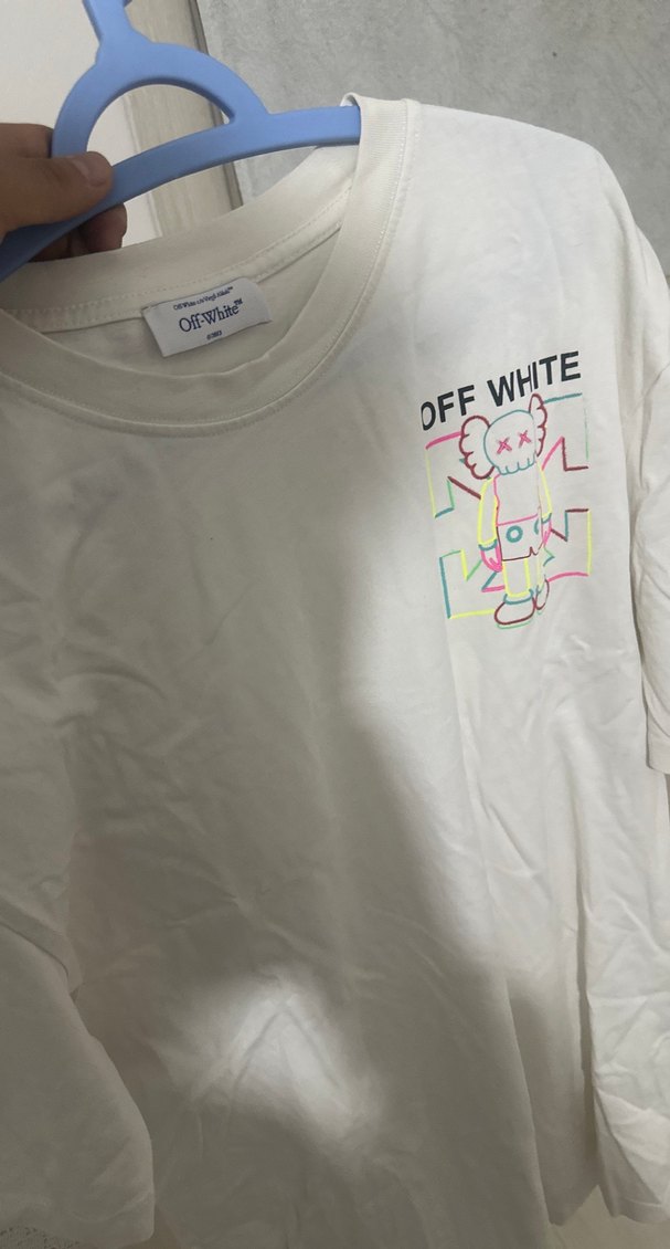 Off White baskılı, pamuklu, beyaz erkek tişörtü. Kısa kollu, yuvarlak yakalı ve rahat kesimlidir. Günlük kullanıma uygundur.