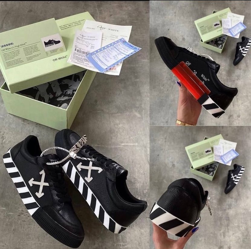 Off-White erkek siyah spor ayakkabılar, baskılı desen ve cırt cırtlı bant ile. Spor ve sokak stili için cesur, koyu tasarım. İADE YOKTUR