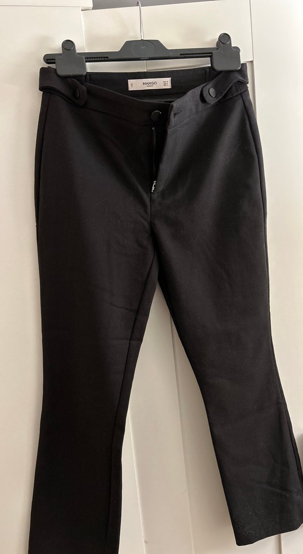 Orta bel kumaş pantolon. Flared cropped paça, paçaları mini yırtmaçlı