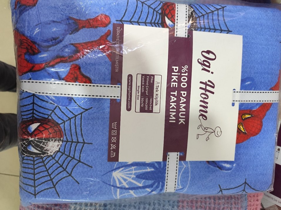 %100 pamuk mavi renkte, baskılı örümcek adam desenli Yumuşak ve dayanıklı kumaştan, tek kişilik pike takımdır.