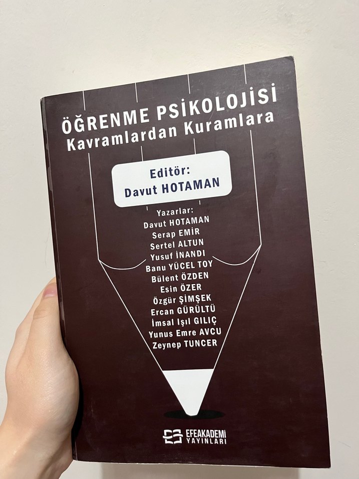Davut Hotaman editörlüğünde, öğrenme psikolojisi kavram ve kuramlarını içeren bir kitap. Birçok yazarın katkısıyla hazırlanmıştır. İçerisine ders sürecinde aldığım notlar bulunmakta bu yüzden pazarlık payı vardır.