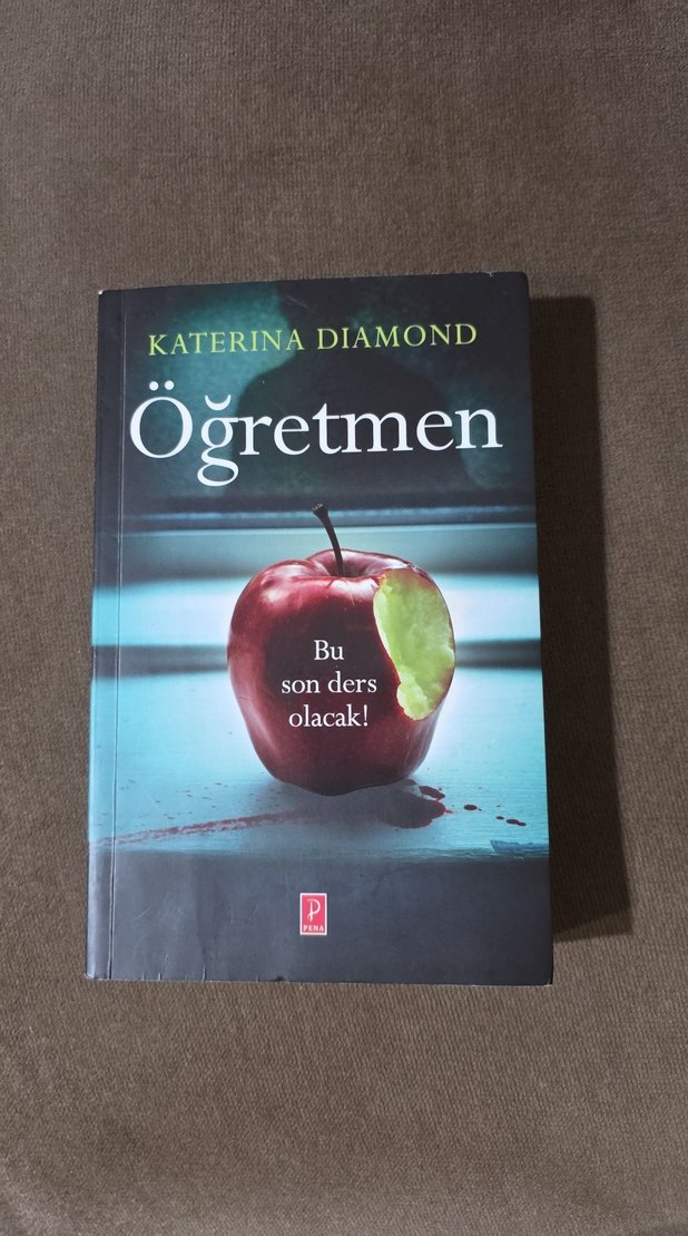 Katerina Diamond'ın "Öğretmen" romanı, "Bu son ders olacak!" sloganıyla dikkat çekiyor. Kapakta ısırılmış bir elma yer alıyor. Orjinal ve 1. Baskı. Okumaya engel bir durumu yok