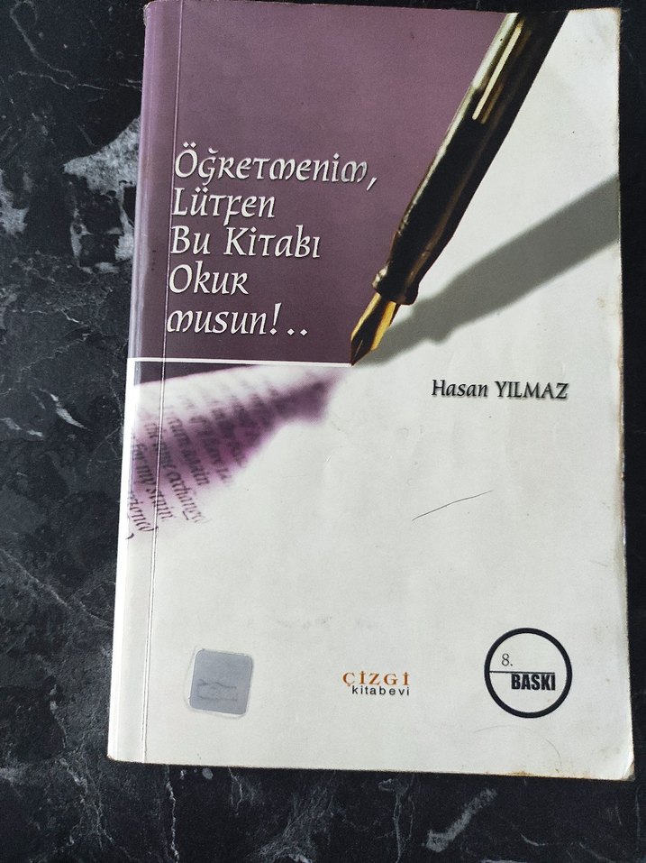 Hasan Yılmaz'ın 'Öğretmenim Lütfen Bu Kitabı Okur musun' adlı romanı, Çizgi Kitabevi tarafından 8. baskı olarak yayımlanmıştır. Bazı yerlerde kurşun kalemle çizilmiş yerler var ve zamana bağlı sararmalar mevcut