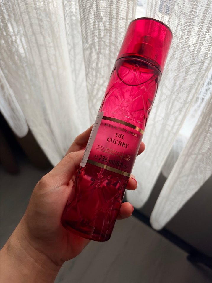 Oh Cherry kadın parfümü, 236 ml sprey şişede, canlı kiraz kokusuyla kırmızı renkte.