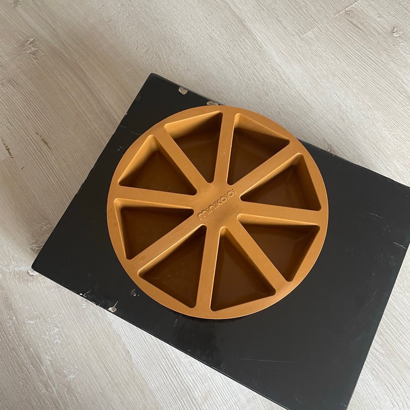 Kahverengi kek kalıbı, 8 dilimli ve üçgen bölümleri ile eşit dilimlerde kek pişirmek için uygundur.