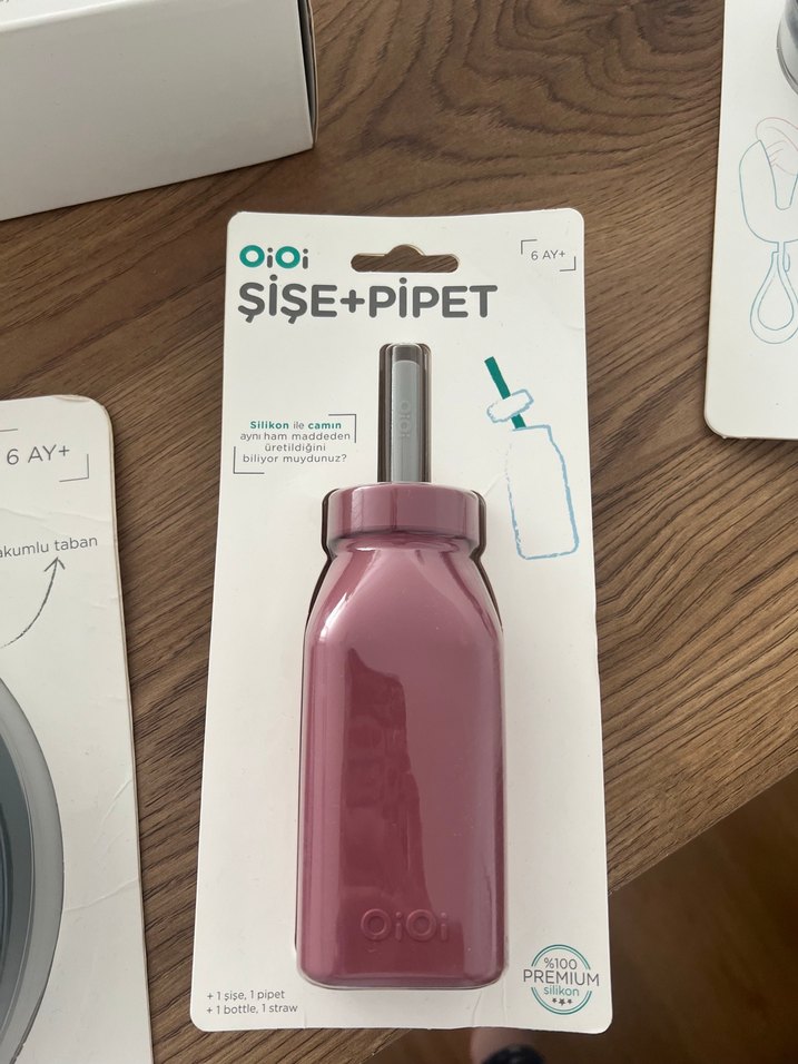 Oioi Bordo Çocuk Tabak, şişe pipet