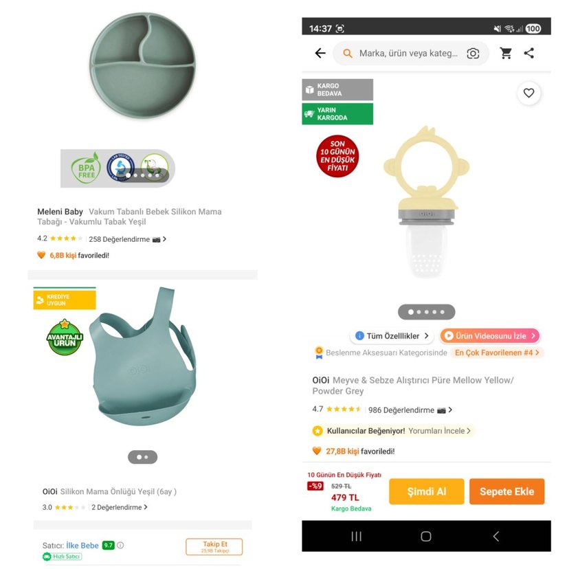 oioi mama önlüğü, meyve sebze süzgeci ve meleni silikon tabak