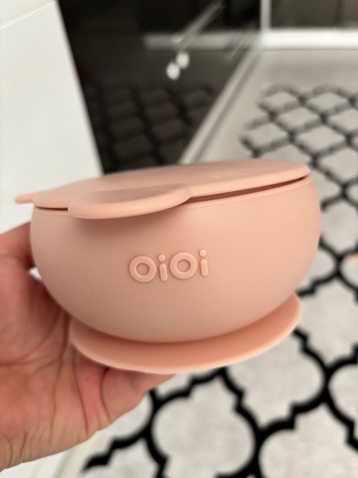 OiOi markalı pastel pembe silikon çocuk tabağı, kapaklı ve kaymaz tabanlıdır, yemek sırasında dökülmeyi önler. ️