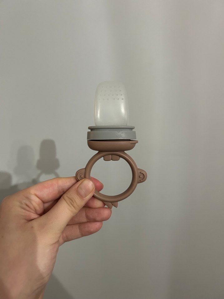 Gri silikon halkası ve bej rengi ile kolay tutuş sağlayan emzik.