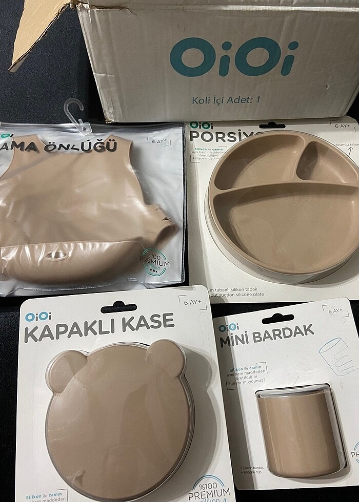 Oioi silikon beslenme seti 4lü Bubble beige Kutuludur hiç kullanılmadı