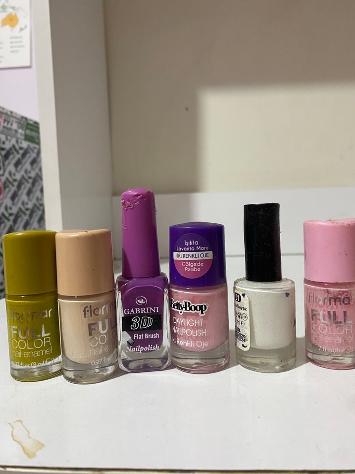 Yeşil ve beyaza hiç kullanmadım yeşilin yanındakini bir kere denemiş olmam gerekiyor ortadaki ürün ışıkta mor gölge de pembe oluyor