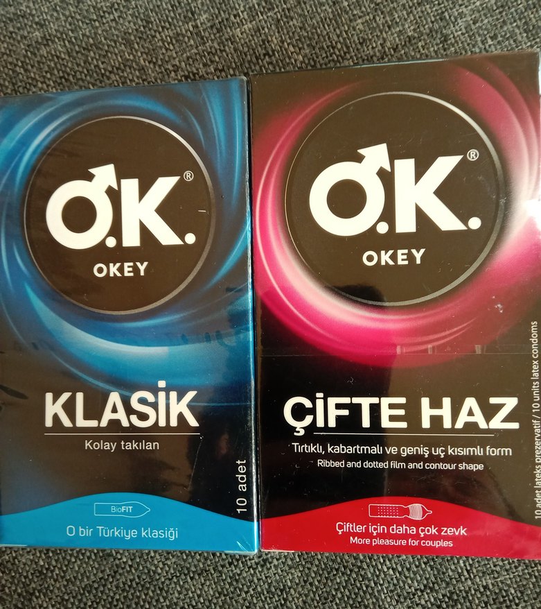 Okey markalı prezervatifler, kolay takılan klasik ve çiftlere özel tırtıklı, kabartmalı dokusuyla daha fazla zevk sunar. 2 adettir