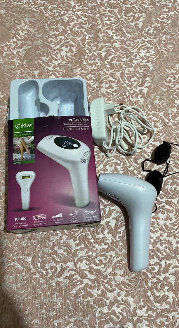 Kiwi lazer epilasyon cihazı 900.000 atış kapasitesi ile uzun ömürlü kullanım sağlar. Beyaz, ergonomik tasarıma ve ayarlanabilir ekranlı kontrol paneline sahiptir. Güç kablosu ve koruyucu gözlük dahildir. ⚡ az kullanıldı PAZARLIK YAPILIR
