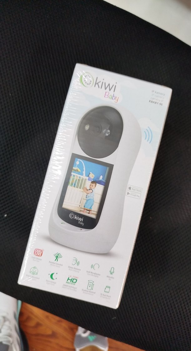 Okiwi Baby monitör, beyaz renkli ve HD görüntü sağlayan ekrana sahiptir. Kablosuz bağlantı ile bebek takibi yapar.