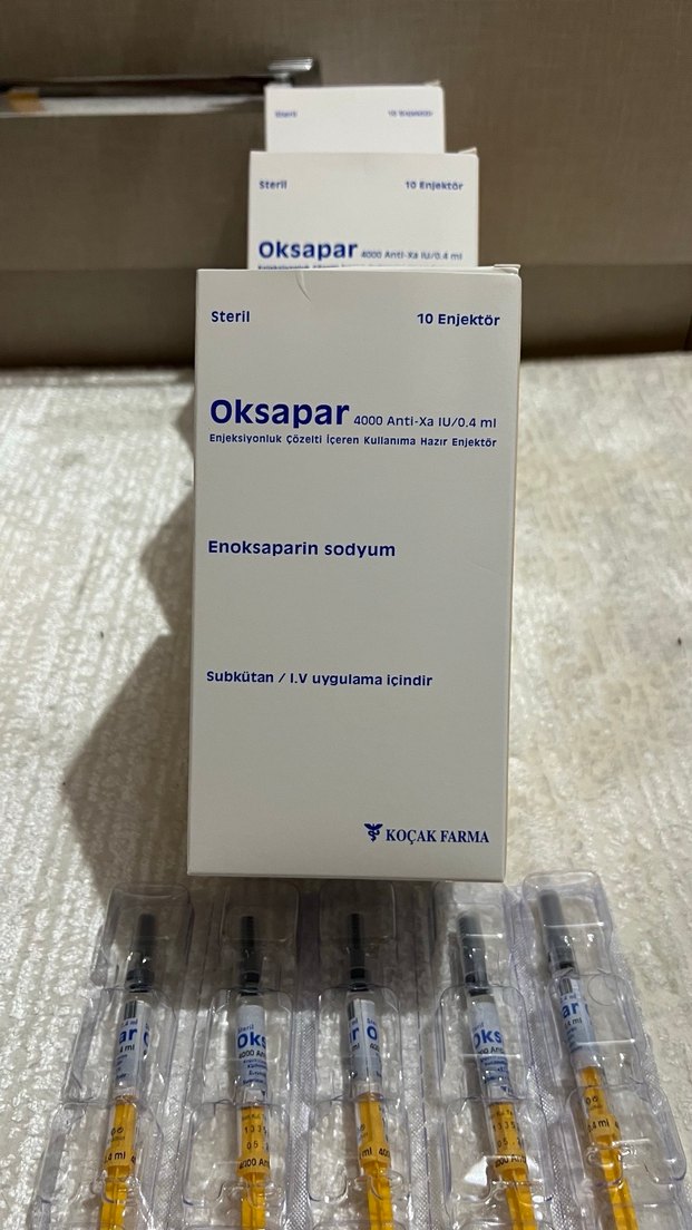 İstanbul anadolu yakası elden teslim 3 kutu full + 5 adet ( 35 adet mevcut) kullanılmamış sıfır ihtiyaç fazladı satılık.Oksapar, enoksaparin sodyum içeren, subkütan veya intravenöz kullanım için 10 adet steril hazır enjektör içerir. Her enjektör 4000 Anti-Xa IU/0.4 ml hacmindedir.
