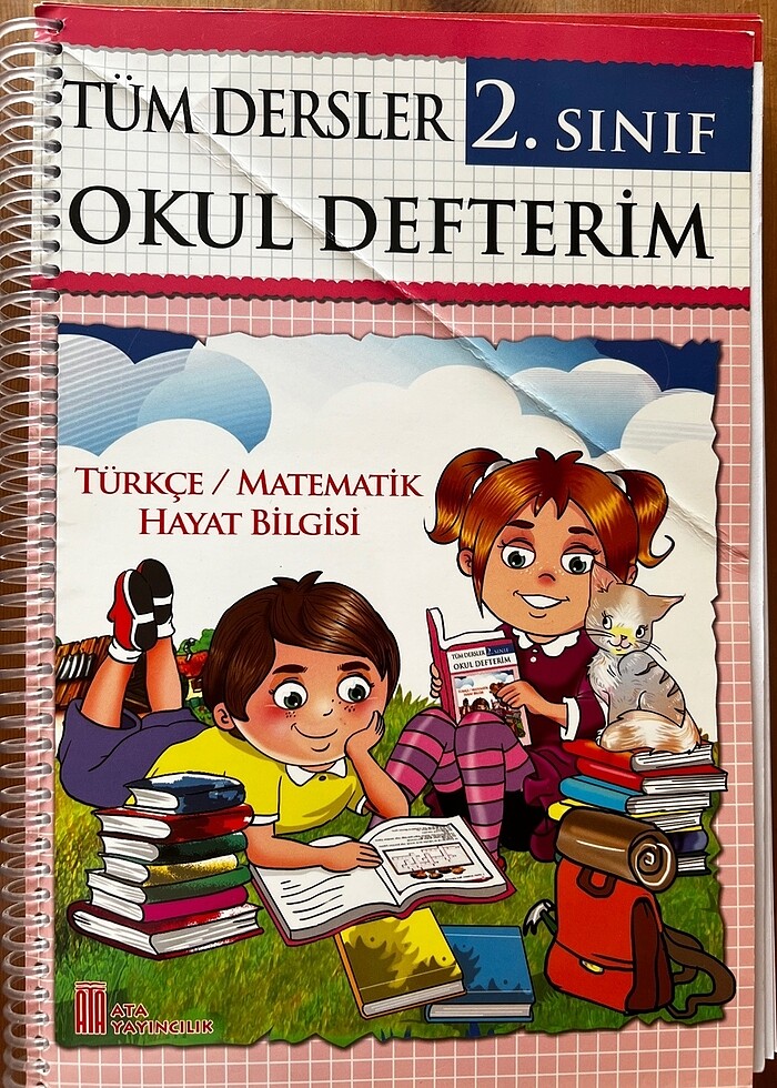 Ata yayıncılık tüm dersler okul defterim kitabı.çözülmemiş sıfır.kapağında kırışıklık var onun dışında tertemiz. 2.Sınıf Tüm Dersler Okul Defterim; Türkçe, matematik, fen bilimleri ve sosyal bilgiler derslerinin daha iyi anlaşılır olması ve öğrencilerimize kolaylık sağlaması amacıyla hazırlanmıştır. Defterimizde öğrencilerimizin notlar alabileceği sayfalar, konuları pekiştirebileceği ev çalışmam sayfaları, kendini değerlendirebileceği testler bulunmaktadır.