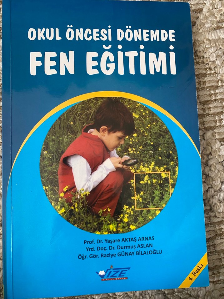 Okul öncesi dönemde fen eğitimi hakkında, Prof. Dr. Yasare Aktas Arnas ve diğerleri tarafından yazılmış çocuk kitabı. *Ürün üniversitede ders kitabı olarak kullanıldığından yer yer fotforlu kalem çizgileri mevcuttur.