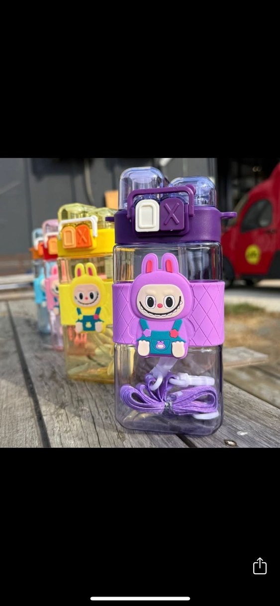 Sıfır )Renkli turkuaz çocuk termos şişe, oyuncu tavşan figürü ve çift düğmeli turuncu kapak içerir. Taşıma askısı da mevcuttur.