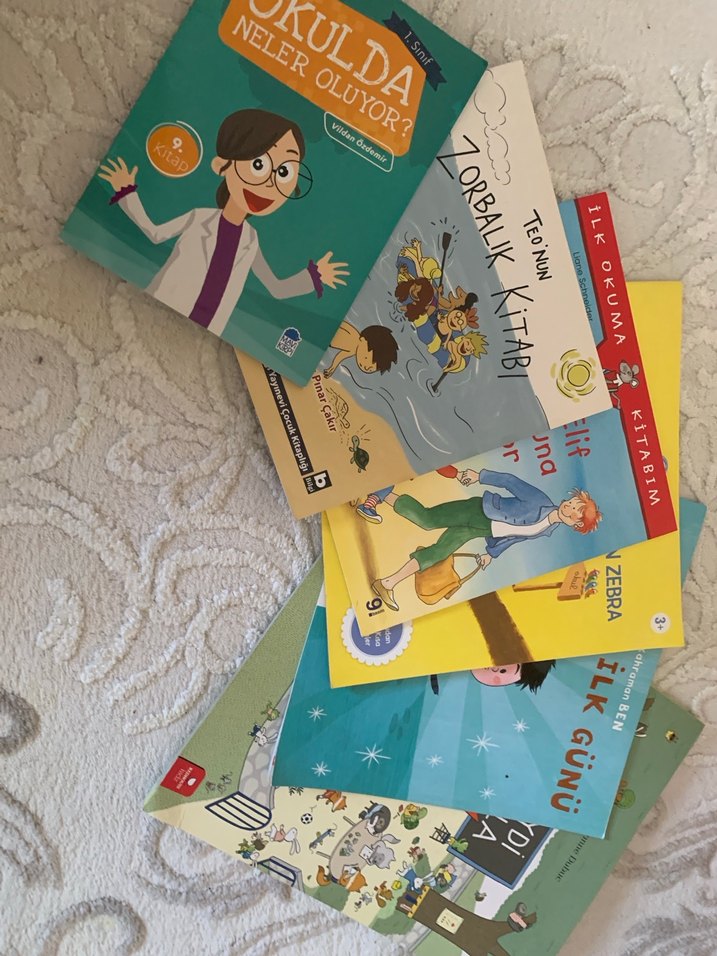 Okulla ilgili kitaplar 6 kitap Okul, zorbalık ve ilk gün gibi konuları içeren çocuklar için ilk okuma kitapları seti. Teo'nun Zorbalık kitabı, Okulda neler oluyor, Okula gitmek istemeyen Zebra, Minik Elif Anaokuluna başlıyor, Okulun ilk günü, Haydi Okula