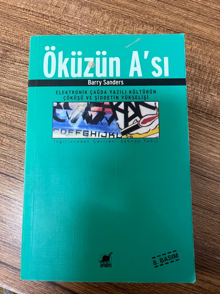 Barry Sanders'ın "Öküzün A'sı" adlı kitabı elektronik çağda yazılı kültürün çöküşü ve şiddetin yükselişini inceliyor. 8. basım.