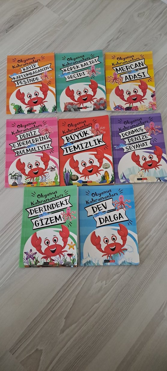 Okyanus Kahramanları serisinden 8 kitaplık set. Seyahat, temizlik, dalga ve deniz gizemleri gibi konular işleniyor. Eğlenceli yengeç karakteri yer alıyor.