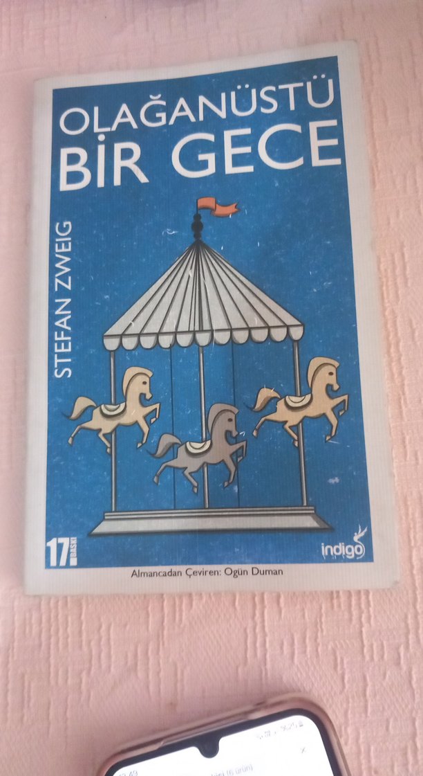 Stefan Zweig'in "Olağanüstü Bir Gece" adlı romanı, Almancadan Oğun Durman tarafından çevrilmiştir. Kapakta atlı karınca resmi bulunmaktadır.
