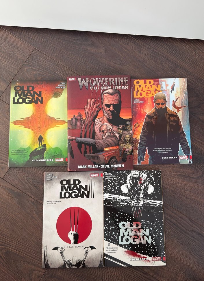 TEK TEK SATILMAZ. HEPSİ İNGİLİZCE Old Man Logan By Mark Millar SERT KAPAK Old Man Logan by Jeff Lemire Cilt 1-4 Marvel'in Old Man Logan serisinden beş çizgi roman içeren set. Wolverine hayranları ve koleksiyoncular için uygun.