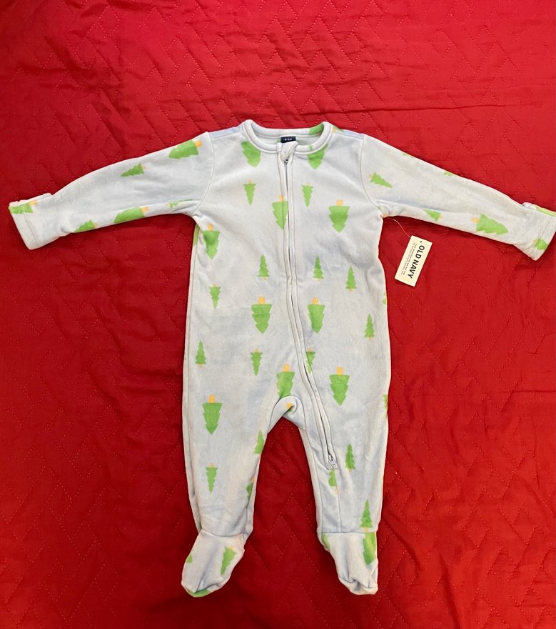 Unisex model kadife yeni yıl tulumu. Orijinal Old Navy marka. Yumuşacık ve rahat. Elleri kapanabiliyor. Ayakları patikli. Sonrasında dışarı çıkarken ya da gece uyku tulumu olarak kullanılabilir. Fermuarı çift taraflı. Bez değişiminde büyük kolaylık sağlıyor. Sadece aynı beden 2 adet ürün elimde mevcut. ( beden : 6-9 ay )