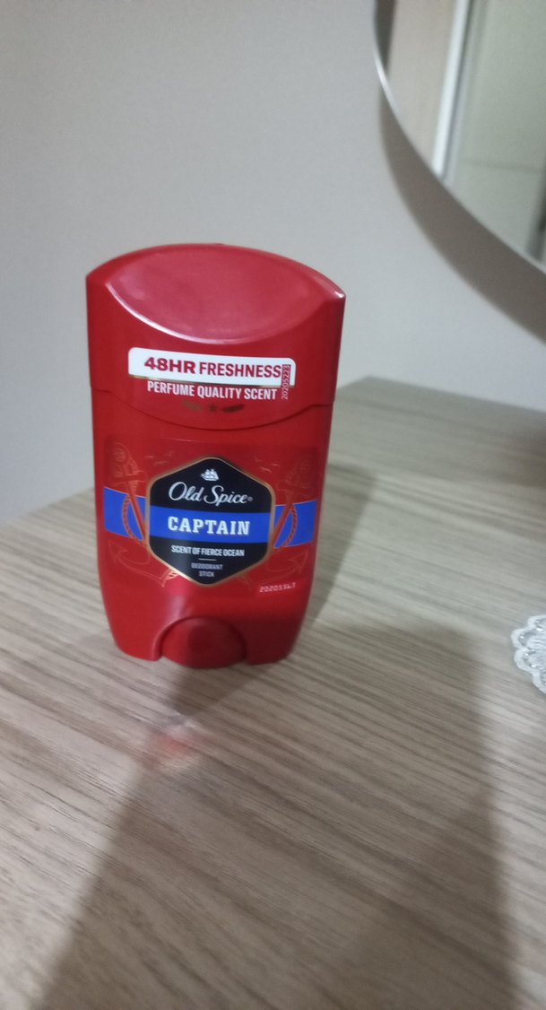 Old Spice Captain deodorant stick, parlak kırmızı tasarımı ve taze okyanus kokusuyla 48 saat ferahlık ve parfüm kalitesi sunar.