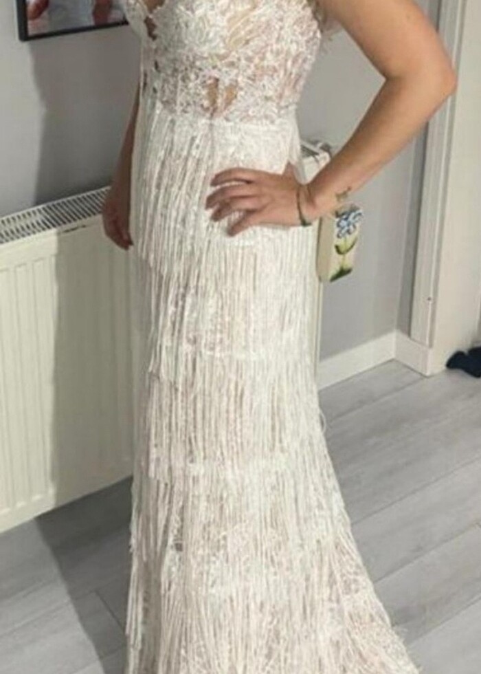 Oleg cassini abiye inci beyazı bir defa giyildi gelinlik nişanlık harika sünnet düğün elbisesi .