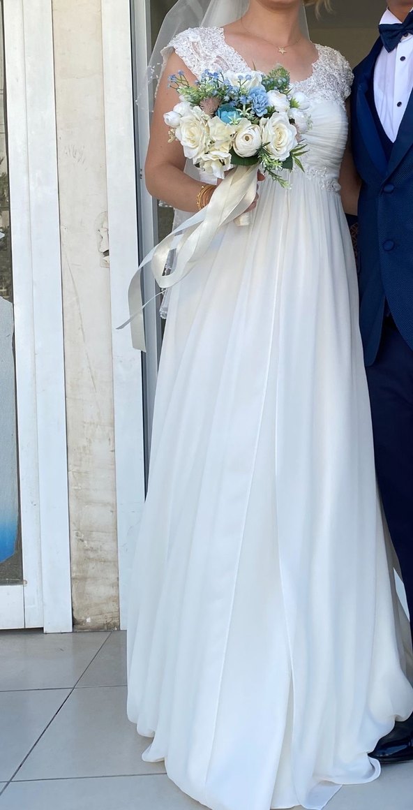 Oleg Cassini 40 beden gelinlik. Sadece nikâhta giyildi, kuru temizlemesi yapıldı, tertemiz ve hiçbir sorunu yoktur. Zarif ve rahat bir modeldir. Duvağı da yanında verilecektir. Yeni sahibine şimdiden mutluluk getirmesini dilerim