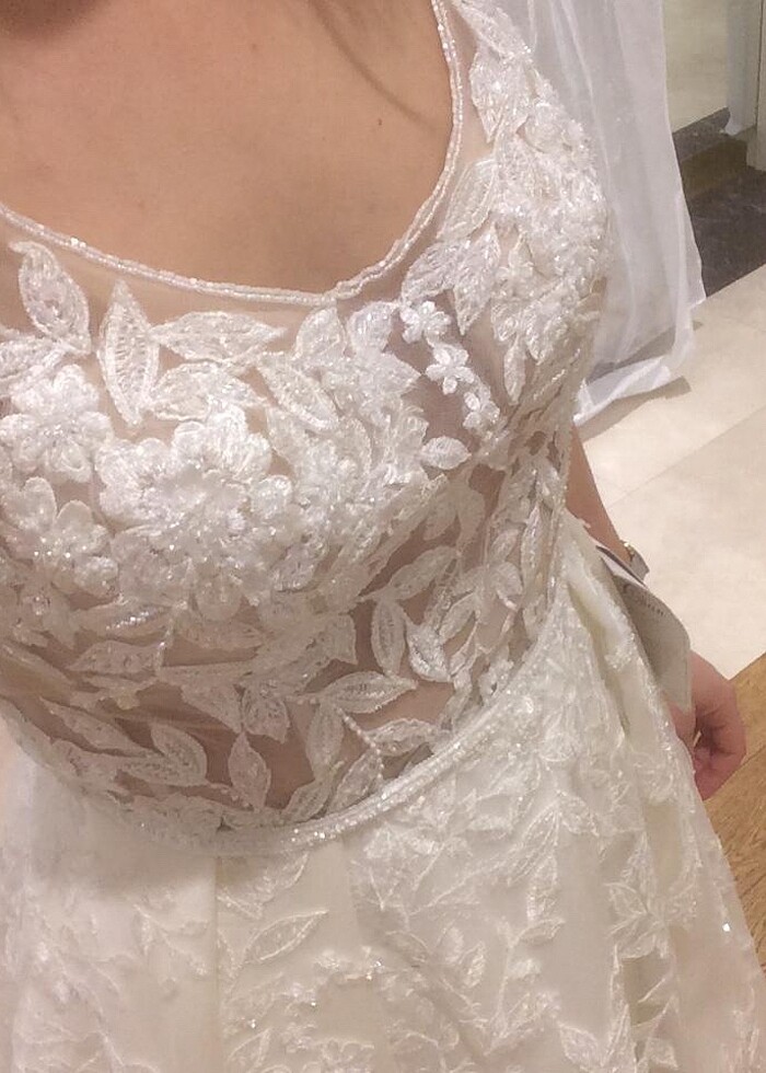 Ankara armada oleg cassini mağazasından aldım. Oleg cassini markası viola chan premium koleksiyonuna ait bir gelinliktir. 38 bedendi 36 bedene göre daralttırdım. Ayrıca üst kısmı transparan olduğu için kaplattım ama kumaş çıkabiliyor, iki türlü de kullanılabilir. Tarlatanı mevcuttur, fildişi rengindedir, tamamı işlemeli olmasına rağmen hafif ve rahat bir gelinliktir. Kendi kılıfında gönderim yapılacaktır. #olegcassini #gelinlik #violachan